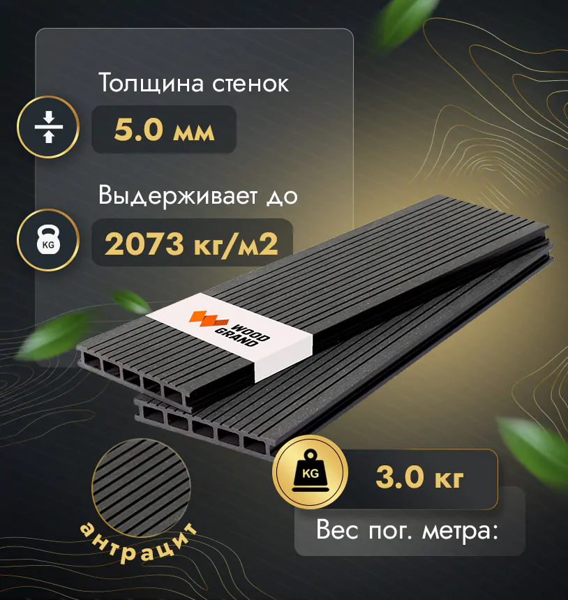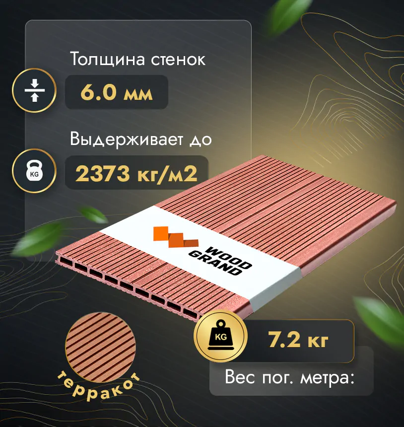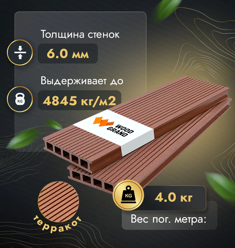 Террасная доска из МПК – это по-настоящему «каменная доска» - революционный материал в загородном строительстве. В основе доски из МПК - минеральная мука и связующие полимеры.